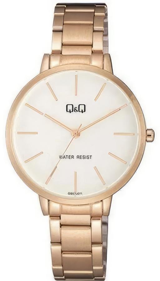 Женские наручные часы Q&Q Attractive Women QB57J011Y. Точный кварцевый механизм с аналоговой индикацией. Корпус изготовлен из высококачественной часовой латуни с высокими антикоррозийными свойствами. Браслет из нержавеющей стали. Прочное, устойчивое к царапинам минеральное стекло защищает часы от повреждений.Часы являются водонепроницаемыми до 3 Бар. Цвет корпуса: Розовое золото. Цвет циферблата: Белый. Ширина (с заводной головкой): 34мм. Толщина: 9мм. Гарантия: 1 год.