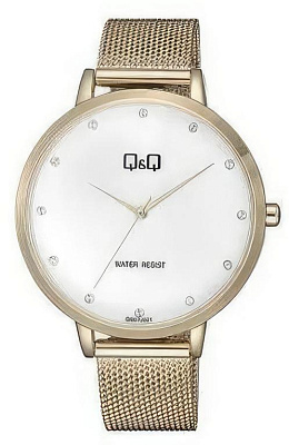 Женские наручные часы Q&Q Attractive Women QB57J101Y. Точный кварцевый механизм с аналоговой индикацией. Корпус изготовлен из высококачественной часовой латуни с высокими антикоррозийными свойствами. Ремешок изготовлен из кожи. Прочное, устойчивое к царапинам минеральное стекло защищает часы от повреждений.Часы являются водонепроницаемыми до 3 Бар. Цвет корпуса: Желтое золото. Цвет циферблата: Белый. Ширина (с заводной головкой): 36мм. Толщина: 8мм. Гарантия: 1 год.