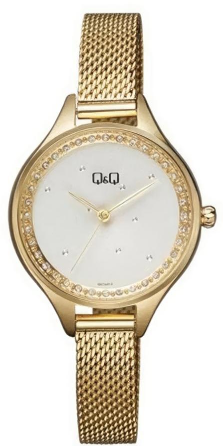 Женские наручные часы Q&Q Attractive Women QB73J010Y. Точный кварцевый механизм с аналоговой индикацией. Корпус изготовлен из высококачественной часовой латуни с высокими антикоррозийными свойствами. Браслет из нержавеющей стали. Прочное, устойчивое к царапинам минеральное стекло защищает часы от повреждений.Часы являются водонепроницаемыми до 3 Бар. Цвет корпуса: Желтое золото. Цвет циферблата: Белый. Ширина (с заводной головкой): 34мм. Толщина: 8мм. Гарантия: 1 год.