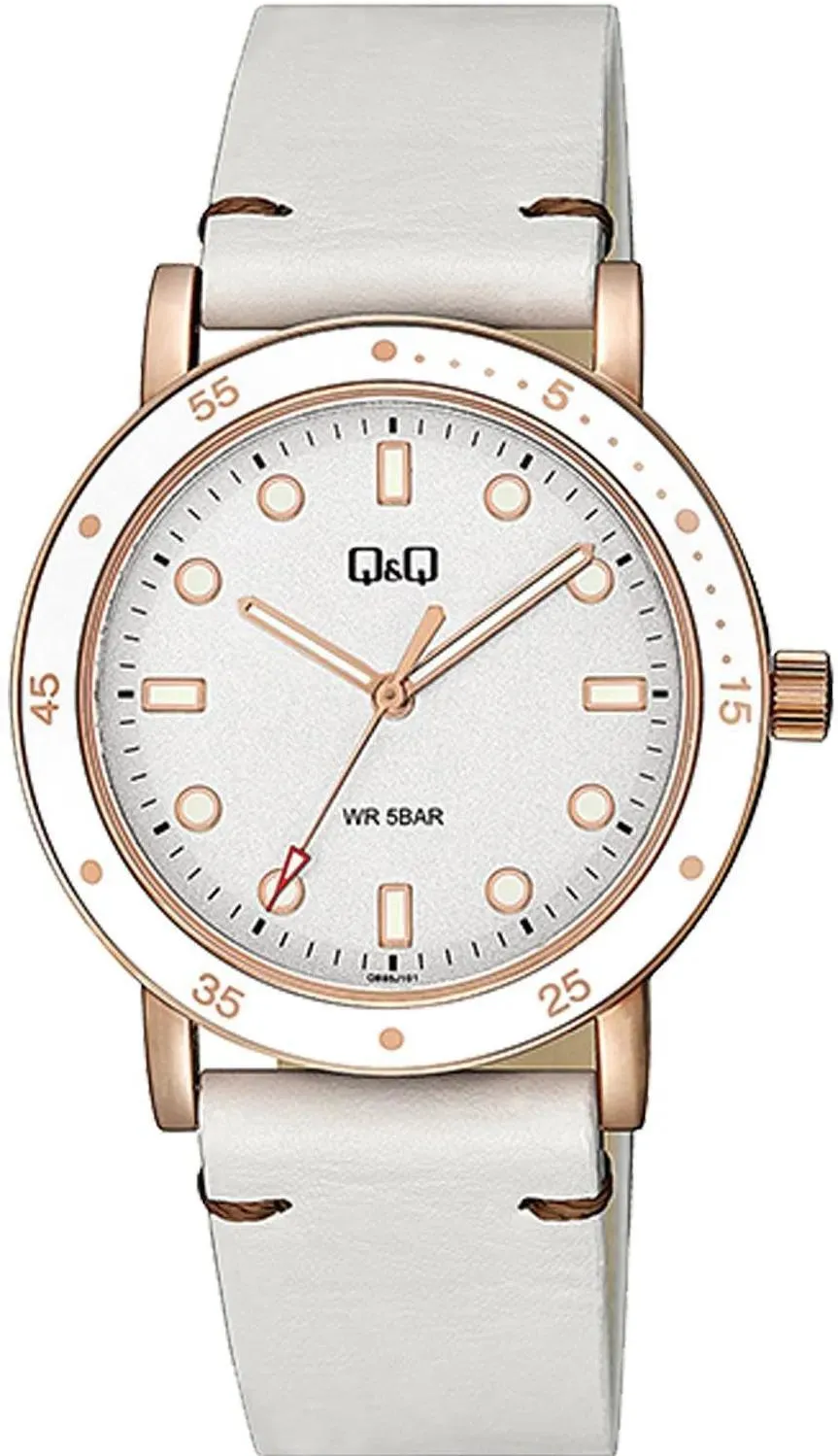 Женские наручные часы Q&Q Attractive Women QB85J101Y. Точный кварцевый механизм с аналоговой индикацией. Корпус изготовлен из высококачественной часовой латуни с высокими антикоррозийными свойствами. На стрелки и отметки нанесен светонакопительный состав, благодаря этому считывать информацию с циферблата возможно и в темноте. Ремешок изготовлен из кожи. Прочное, устойчивое к царапинам минеральное стекло защищает часы от повреждений.Часы являются водонепроницаемыми до 5 Бар. Цвет корпуса: Розовое золото. Цвет циферблата: Белый. Ширина (с заводной головкой): 38мм. Толщина: 8мм. Гарантия: 1 год.