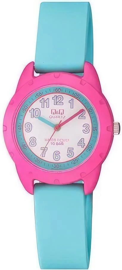 Детские наручные часы Q&Q Attractive Women VR97J004Y. Точный кварцевый механизм с аналоговой индикацией. Полимерный корпус надежно защищает часы от механических повреждений. Полимерный ремешок. Натуральный полимерный материал является идеальным для изготовления ремешка благодаря своей чрезвычайной прочности и гибкости. Органическое стекло. Часы являются водонепроницаемыми до 10 Бар. Цвет корпуса: Фиолетовый. Цвет циферблата: Белый. Ширина (с заводной головкой): 28мм. Толщина: 6мм. Гарантия: 1 год.