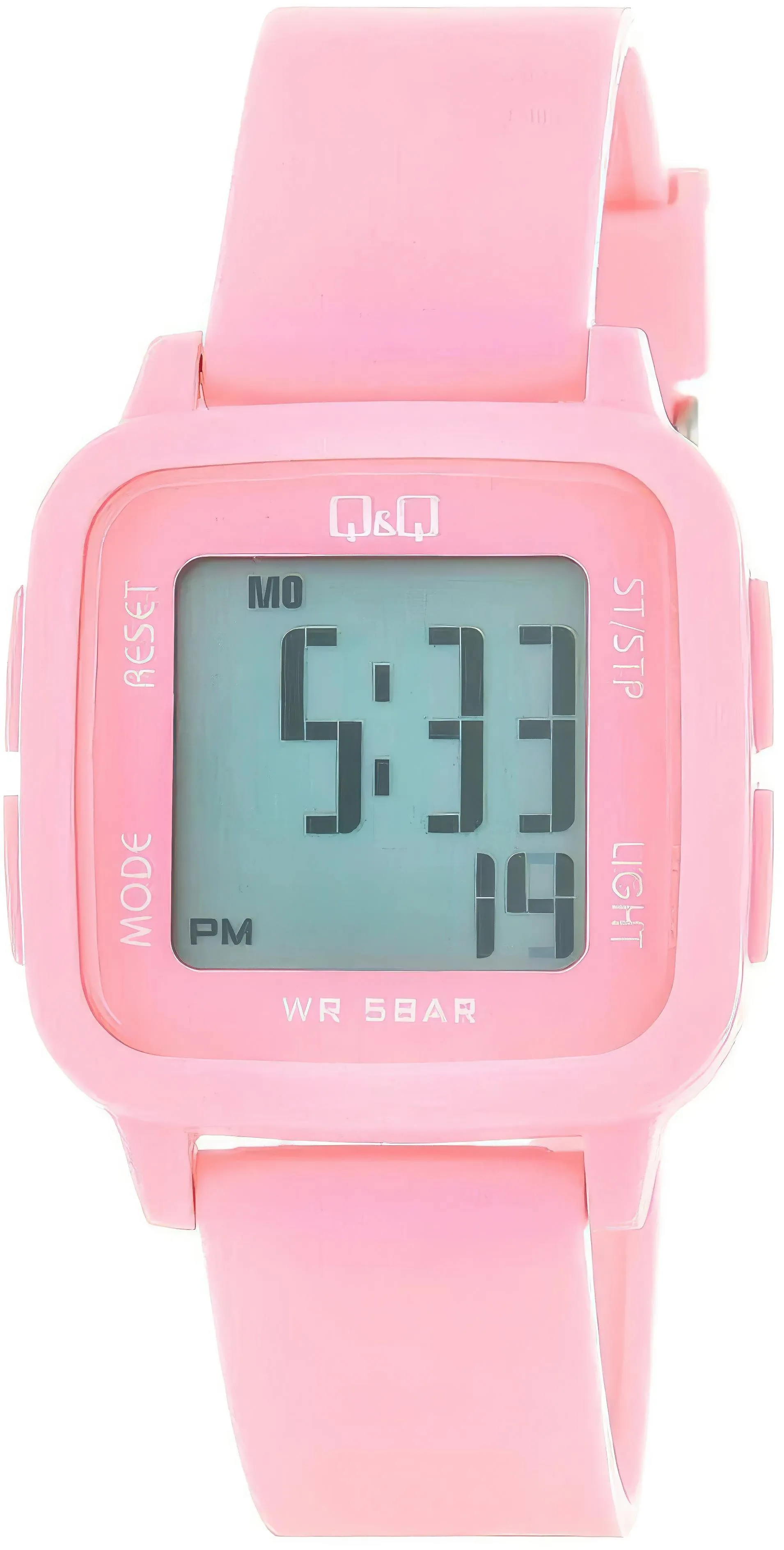 Женские наручные часы Q&Q Digital G02AJ006Y. Точный кварцевый механизм с цифровой индикацией. Полимерный корпус надежно защищает часы от механических повреждений. Светодиодная подсветка. На циферблате отображается текущее число, месяц и день недели. Функция хронографа. Функция таймера. Таймеры обратного отсчета напомнят Вам о текущих или особенных событиях, издав звуковой сигнал в установленное время. Функция будильника. Полимерный ремешок. Натуральный полимерный материал является идеальным для изготовления ремешка благодаря своей чрезвычайной прочности и гибкости. Органическое стекло. Часы являются водонепроницаемыми до 5 Бар. Цвет корпуса: Розовый. Цвет циферблата: Розовый. Ширина (с заводной головкой): 32мм. Толщина: 11мм. Гарантия: 1 год.