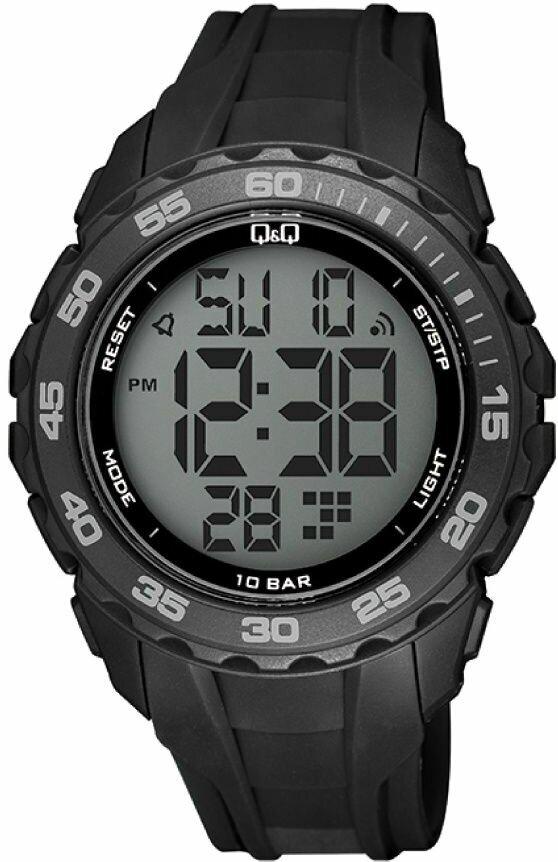 Мужские наручные часы Q&Q Digital G06AJ001Y. Точный кварцевый механизм с цифровой индикацией. Полимерный корпус надежно защищает часы от механических повреждений. Светодиодная подсветка. На циферблате отображается текущее число, месяц и день недели. Функция хронографа. Функция таймера. Таймеры обратного отсчета напомнят Вам о текущих или особенных событиях, издав звуковой сигнал в установленное время. Функция будильника. Отображение времени возможно в 12-часовом или 24-часовом формате. Полимерный ремешок. Натуральный полимерный материал является идеальным для изготовления ремешка благодаря своей чрезвычайной прочности и гибкости. Органическое стекло. Часы являются водонепроницаемыми до 10 Бар. Цвет корпуса: Черный. Цвет циферблата: Черный. Ширина (с заводной головкой): 46мм. Толщина: 13мм. Гарантия: 1 год.
