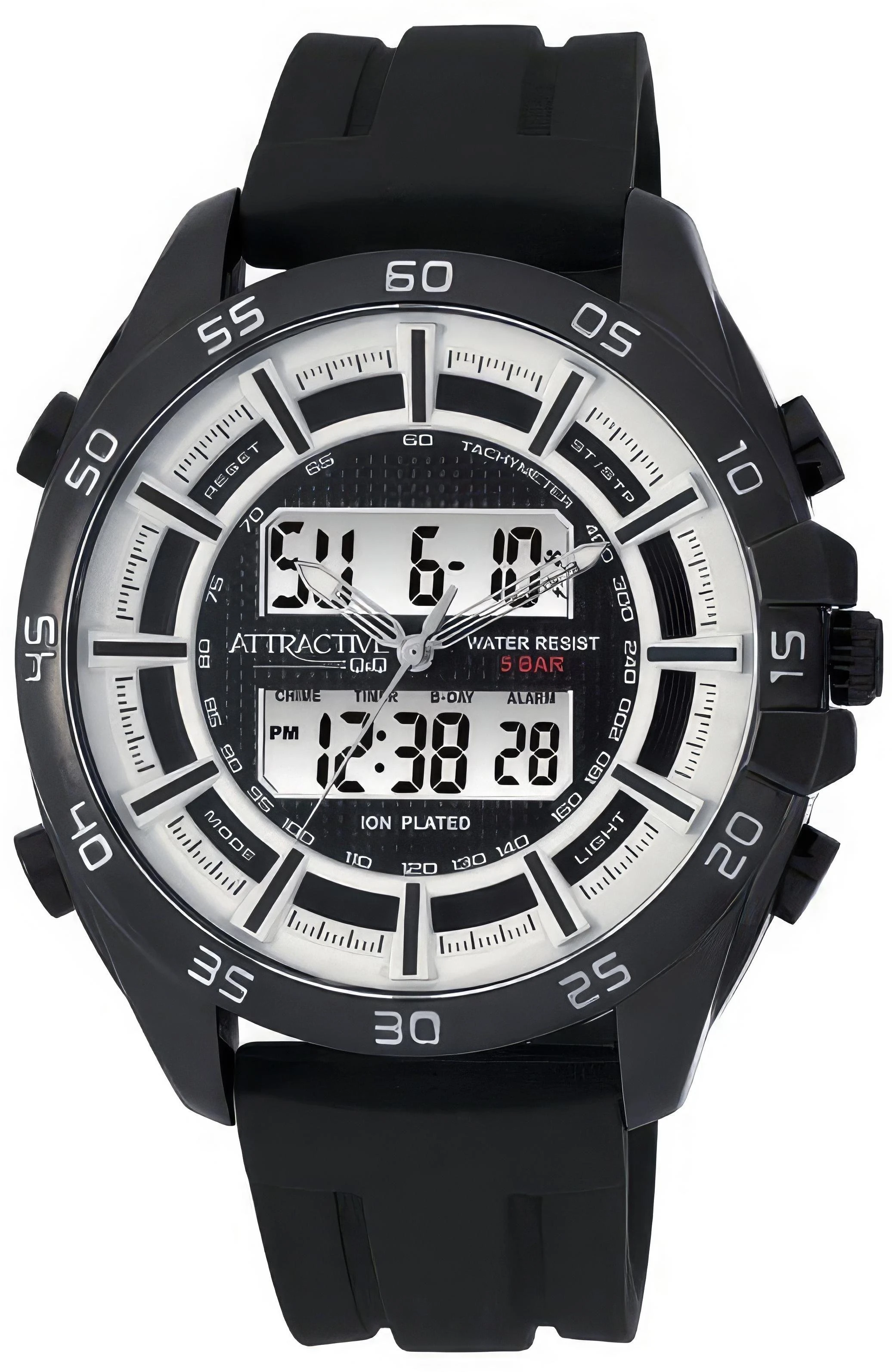 Мужские наручные часы Q&Q DE08J522Y. Точный кварцевый механизм с аналого-цифровой индикацией. Корпус изготовлен из высококачественной часовой латуни с высокими антикоррозийными свойствами. Светодиодная подсветка. На циферблате отображается текущее число, месяц и день недели. Полимерный ремешок. Натуральный полимерный материал является идеальным для изготовления ремешка благодаря своей чрезвычайной прочности и гибкости. Прочное, устойчивое к царапинам минеральное стекло защищает часы от повреждений.Часы являются водонепроницаемыми до 5 Бар. Цвет корпуса: Черный. Ширина (с заводной головкой): 50мм. Гарантия: 1 год.