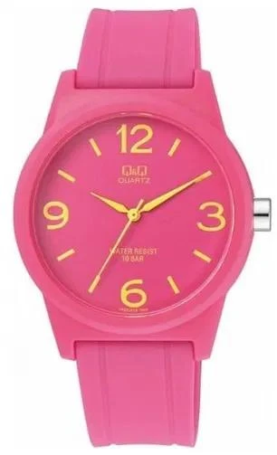 Мужские наручные часы Q&Q VR35J018Y. Точный кварцевый механизм с аналоговой индикацией. Полимерный корпус надежно защищает часы от механических повреждений. Полимерный ремешок. Натуральный полимерный материал является идеальным для изготовления ремешка благодаря своей чрезвычайной прочности и гибкости. Прочное, устойчивое к царапинам минеральное стекло защищает часы от повреждений.Часы являются водонепроницаемыми до 10 Бар. Цвет корпуса: Розовый. Цвет циферблата: Розовый. Ширина (с заводной головкой): 40мм. Гарантия: 1 год.