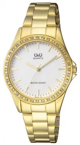 Женские наручные часы Q&Q Q985J001Y. Точный кварцевый механизм с аналоговой индикацией. Корпус изготовлен из высококачественной нержавеющей стали 316L с высокими антикоррозийными свойствами. Браслет из нержавеющей стали. Прочное, устойчивое к царапинам минеральное стекло защищает часы от повреждений. Часы являются водонепроницаемыми до 3 Бар. Цвет корпуса: Желтое золото. Цвет циферблата: Белый. Ширина (с заводной головкой): 45мм. Гарантия: 1 год.