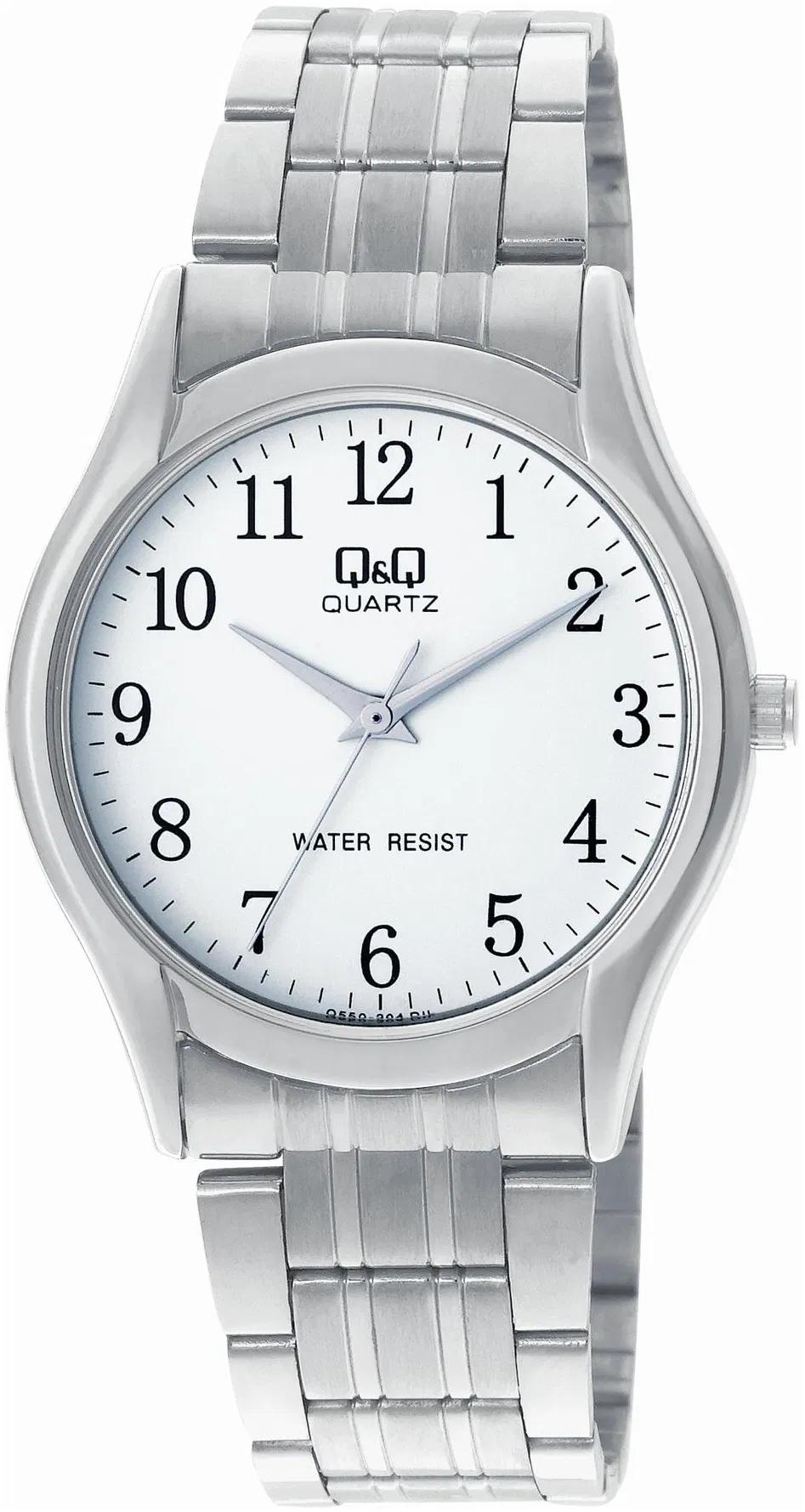 Классические мужские часы с арабскими цифрами на циферблате, оснащенные прочным стальным браслетом.