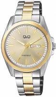 Мужские наручные часы Q&Q Casual A05AJ001Y. Точный кварцевый механизм с аналоговой индикацией. В отличие от механических часов, не требуют завода и работают от батареи, показывая отклонение всего несколько секунд в месяц. Браслет из нержавеющей стали обладает высокой прочностью и износостойкостью, обеспечивая долговечность даже при активной эксплуатации. Материал устойчив к коррозии и сохраняет свой внешний вид надолго. Корпус изготовлен из высококачественной нержавеющей стали 316L с высокими антикоррозийными свойствами. Прочное, устойчивое к царапинам минеральное стекло защищает часы от повреждений. Часы являются водонепроницаемыми до 3 Бар. Цвет корпуса: Серебристый. Цвет корпуса: Желтое золото. Цвет циферблата: Золотистый. Высота (с ушками): 40 мм. Толщина: 8 мм. Гарантия: 1 год.