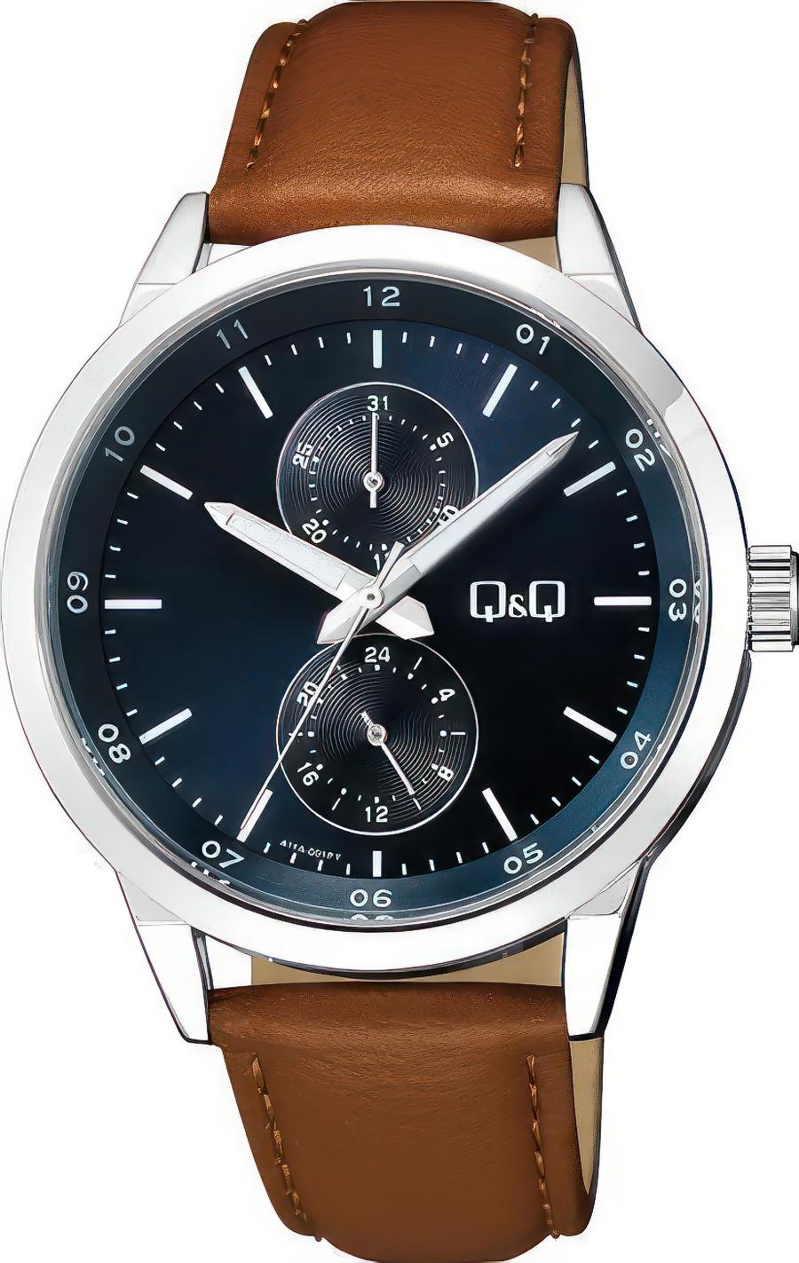 Мужские наручные часы Q&Q Casual A11AJ001Y. Точный кварцевый механизм с аналоговой индикацией. Ремешок изготовлен из кожи. Отображение времени возможно в 12-часовом или 24-часовом формате. Латунный браслет. Прочное, устойчивое к царапинам минеральное стекло защищает часы от повреждений. На циферблате отображается текущее число месяца. Часы являются водонепроницаемыми до 5 Бар. Цвет циферблата: Серебристый. Цвет корпуса: Синий. Толщина: 10 мм. Гарантия: 1 год.