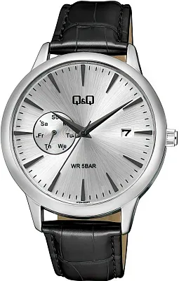 Мужские наручные часы Q&Q Casual A12AJ009Y. Точный кварцевый механизм с аналоговой индикацией. Браслет из нержавеющей стали. Латунный браслет. Прочное, устойчивое к царапинам минеральное стекло защищает часы от повреждений. На циферблате отображается текущее число месяца и день недели. Часы являются водонепроницаемыми до 5 Бар. Цвет циферблата: Серебристый. Цвет корпуса: Черный. Толщина: 9 мм. Гарантия: 1 год.