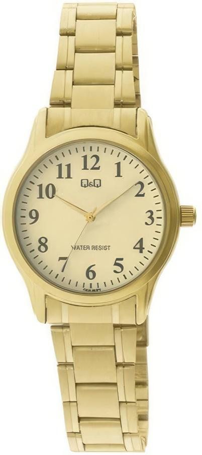 Женские наручные часы Q&Q Casual C03AJ003Y. Точный кварцевый механизм с аналоговой индикацией. Браслет из нержавеющей стали. Браслет из нержавеющей стали. Прочное, устойчивое к царапинам минеральное стекло защищает часы от повреждений. Часы являются водонепроницаемыми до 3 Бар. Цвет циферблата: Желтое золото. Цвет корпуса: Золотистый. Толщина: 8 мм. Гарантия: 1 год.