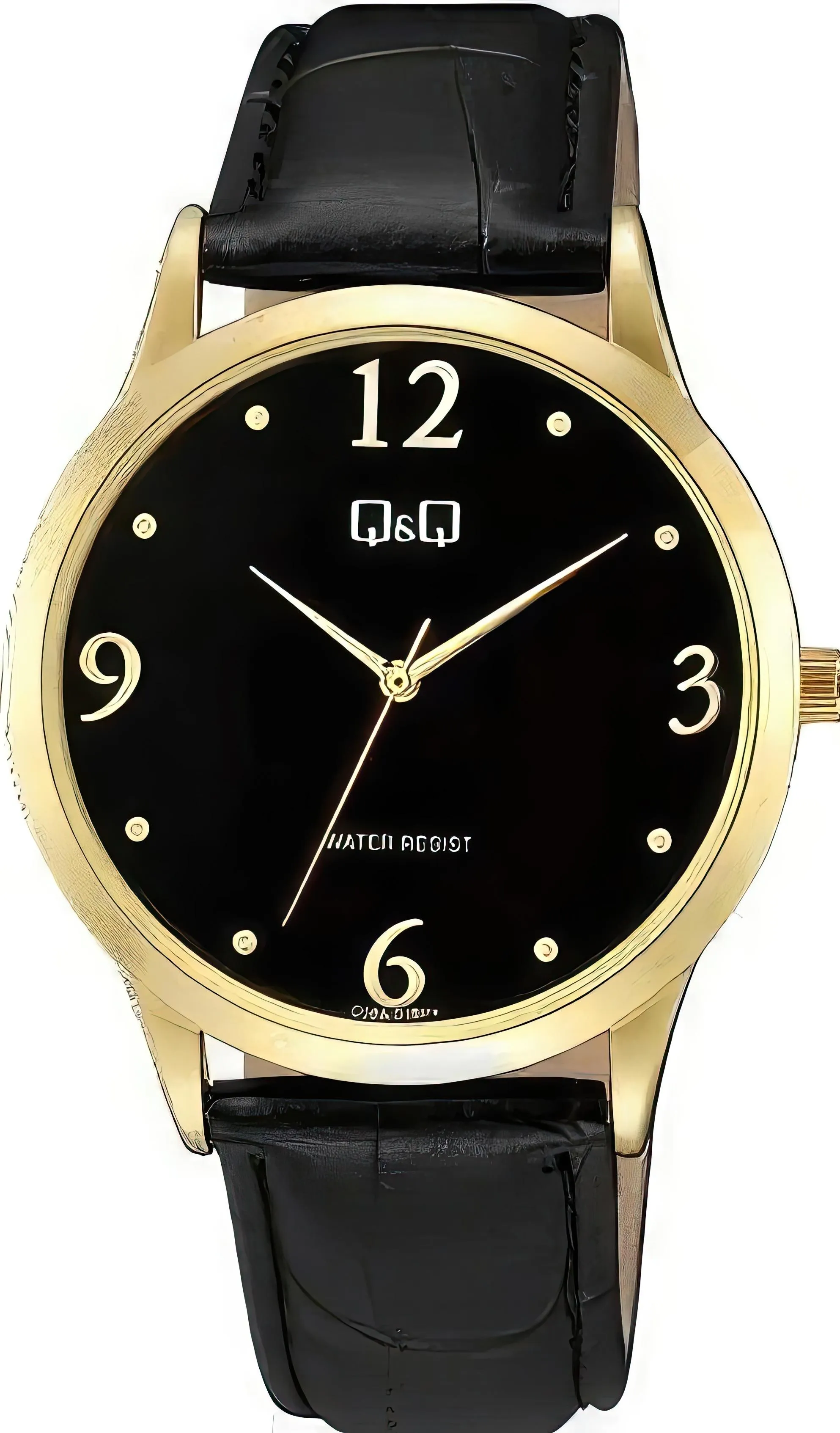 Мужские наручные часы Q&Q Casual C08AJ018Y. Точный кварцевый механизм с аналоговой индикацией. Ремешок изготовлен из кожи. Латунный браслет. Прочное, устойчивое к царапинам минеральное стекло защищает часы от повреждений. Часы являются водонепроницаемыми до 3 Бар. Цвет циферблата: Желтое золото. Цвет корпуса: Черный. Толщина: 8 мм. Гарантия: 1 год.