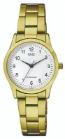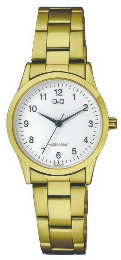 Женские наручные часы Q&Q Casual C09AJ007Y. Точный кварцевый механизм с аналоговой индикацией. Браслет из нержавеющей стали. Браслет из нержавеющей стали. Прочное, устойчивое к царапинам минеральное стекло защищает часы от повреждений. Часы являются водонепроницаемыми до 3 Бар. Цвет циферблата: Желтое золото. Цвет корпуса: Белый. Толщина: 8 мм. Гарантия: 1 год.