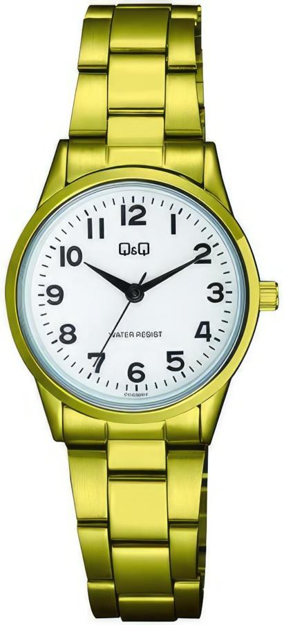Женские наручные часы Q&Q Casual C11AJ007Y. Точный кварцевый механизм с аналоговой индикацией. Браслет из нержавеющей стали. Браслет из нержавеющей стали. Прочное, устойчивое к царапинам минеральное стекло защищает часы от повреждений. Часы являются водонепроницаемыми до 3 Бар. Цвет циферблата: Желтое золото. Цвет корпуса: Белый. Толщина: 8 мм. Гарантия: 1 год.
