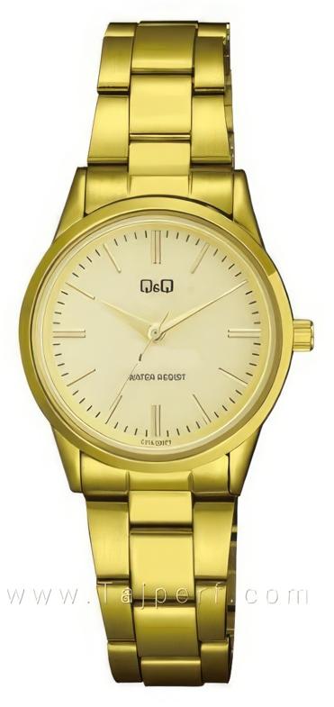 Женские наручные часы Q&Q Casual C11AJ008Y. Точный кварцевый механизм с аналоговой индикацией. Браслет из нержавеющей стали. Браслет из нержавеющей стали. Прочное, устойчивое к царапинам минеральное стекло защищает часы от повреждений. Часы являются водонепроницаемыми до 3 Бар. Цвет циферблата: Желтое золото. Цвет корпуса: Золотистый. Толщина: 9 мм. Гарантия: 1 год.