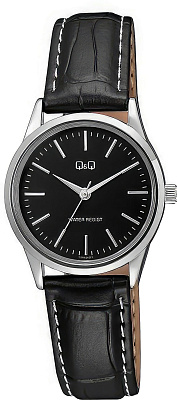 Женские наручные часы Q&Q Casual C11AJ015Y. Точный кварцевый механизм с аналоговой индикацией. Корпус изготовлен из высококачественной часовой латуни с высокими антикоррозийными свойствами. Ремешок изготовлен из кожи. Прочное, устойчивое к царапинам минеральное стекло защищает часы от повреждений.Часы являются водонепроницаемыми до 3 Бар. Цвет корпуса: Серебристый. Цвет циферблата: Черный. Ширина (с заводной головкой): 30мм. Толщина: 8мм. Гарантия: 1 год.