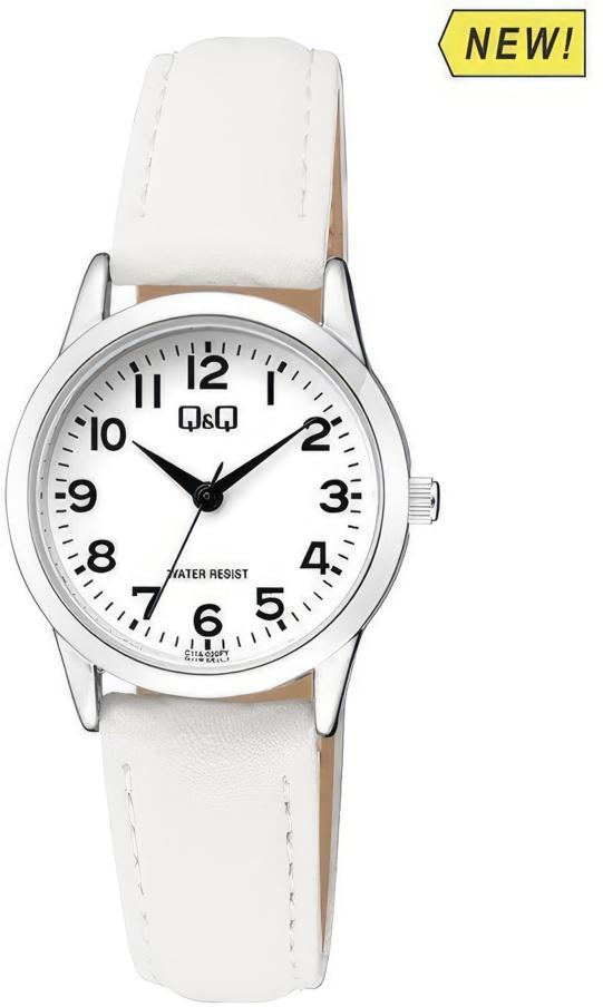 Женские наручные часы Q&Q Casual C11AJ020Y. Точный кварцевый механизм с аналоговой индикацией. Ремешок изготовлен из кожи. Браслет из нержавеющей стали. Прочное, устойчивое к царапинам минеральное стекло защищает часы от повреждений. Часы являются водонепроницаемыми до 3 Бар. Цвет циферблата: Серебристый. Цвет корпуса: Белый. Толщина: 9 мм. Гарантия: 1 год.
