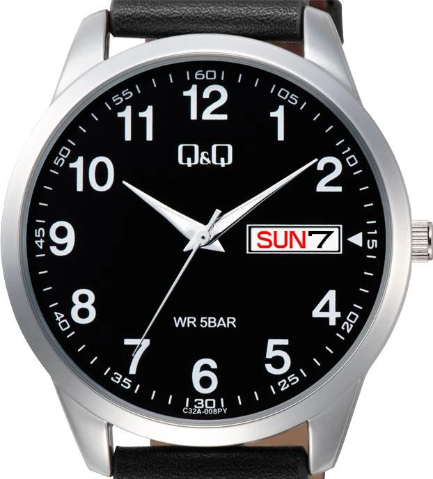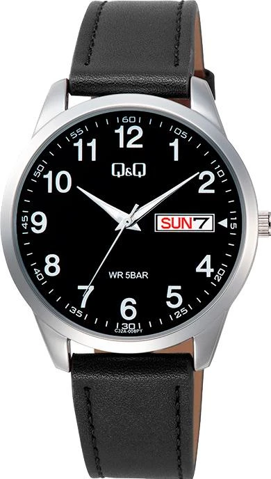 Мужские наручные часы Q&Q Casual C32AJ008Y. Точный кварцевый механизм с аналоговой индикацией. В отличие от механических часов, не требуют завода и работают от батареи, показывая отклонение всего несколько секунд в месяц. Ремешок изготовлен из кожи. Гибкость такого ремешка позволяет точно регулировать посадку часов на руке. Корпус изготовлен из высококачественной нержавеющей стали 316L с высокими антикоррозийными свойствами. Прочное, устойчивое к царапинам минеральное стекло защищает часы от повреждений. Часы являются водонепроницаемыми до 5 Бар. Цвет корпуса: Серебристый. Цвет циферблата: Черный. Толщина: 10.4 мм. Гарантия: 1 год.