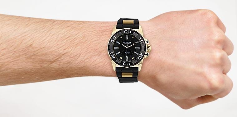 Точный кварцевый механизм. Центральная секундная стрелка. • Точность хода не хуже -10 +15 сек./в месяц. • Светонакопительный состав на стрелках. • Минеральное стекло устойчивое к возникновению царапин. • Корпус из латуни со стойким PVD покрытием. • Черный каучуковый ремешок. • Водозащита до 5 АТМ. • Диаметр корпуса 43 мм, толщина 11 мм. Вес 59 гр.