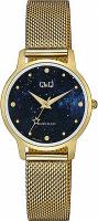 Женские наручные часы Q&Q Casual Q48AJ005Y. Точный кварцевый механизм с аналоговой индикацией. Браслет из нержавеющей стали. Браслет из нержавеющей стали. Прочное, устойчивое к царапинам минеральное стекло защищает часы от повреждений. Часы являются водонепроницаемыми до 3 Бар. Цвет циферблата: Желтое золото. Цвет корпуса: Синий. Толщина: 8 мм. Гарантия: 1 год.