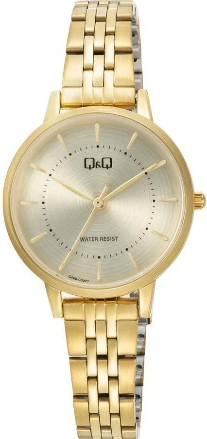 Женские наручные часы Q&Q Casual Q48BJ003Y. Точный кварцевый механизм с аналоговой индикацией. Браслет из нержавеющей стали. Браслет из нержавеющей стали. Прочное, устойчивое к царапинам минеральное стекло защищает часы от повреждений. Часы являются водонепроницаемыми до 3 Бар. Цвет циферблата: Желтое золото. Цвет корпуса: Золотистый. Толщина: 8 мм. Гарантия: 1 год.