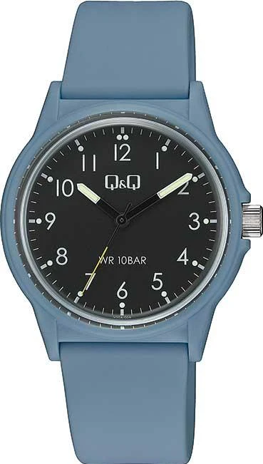 Мужские наручные часы Q&Q Casual V00AJ004V. Точный кварцевый механизм с аналоговой индикацией. Полимерный ремешок. Натуральный полимерный материал является идеальным для изготовления ремешка благодаря своей чрезвычайной прочности и гибкости. Полимерный ремешок. Натуральный полимерный материал является идеальным для изготовления ремешка благодаря своей чрезвычайной прочности и гибкости. Органическое стекло. Часы являются водонепроницаемыми до 10 Бар. Цвет циферблата: Голубой. Цвет корпуса: Черный. На стрелки и отметки нанесен светонакопительный состав, благодаря этому считывать информацию с циферблата возможно и в темноте. Толщина: 11 мм. Гарантия: 1 год.