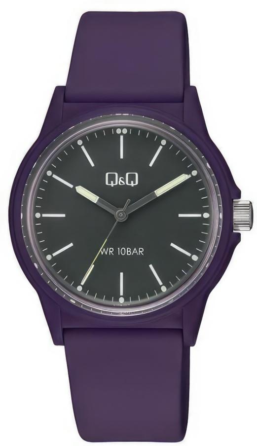 Мужские наручные часы Q&Q Casual V00AJ007V. Точный кварцевый механизм с аналоговой индикацией. Полимерный ремешок. Натуральный полимерный материал является идеальным для изготовления ремешка благодаря своей чрезвычайной прочности и гибкости. Полимерный ремешок. Натуральный полимерный материал является идеальным для изготовления ремешка благодаря своей чрезвычайной прочности и гибкости. Органическое стекло. Часы являются водонепроницаемыми до 10 Бар. Цвет циферблата: Фиолетовый. Цвет корпуса: Черный. На стрелки и отметки нанесен светонакопительный состав, благодаря этому считывать информацию с циферблата возможно и в темноте. Толщина: 11 мм. Гарантия: 1 год.