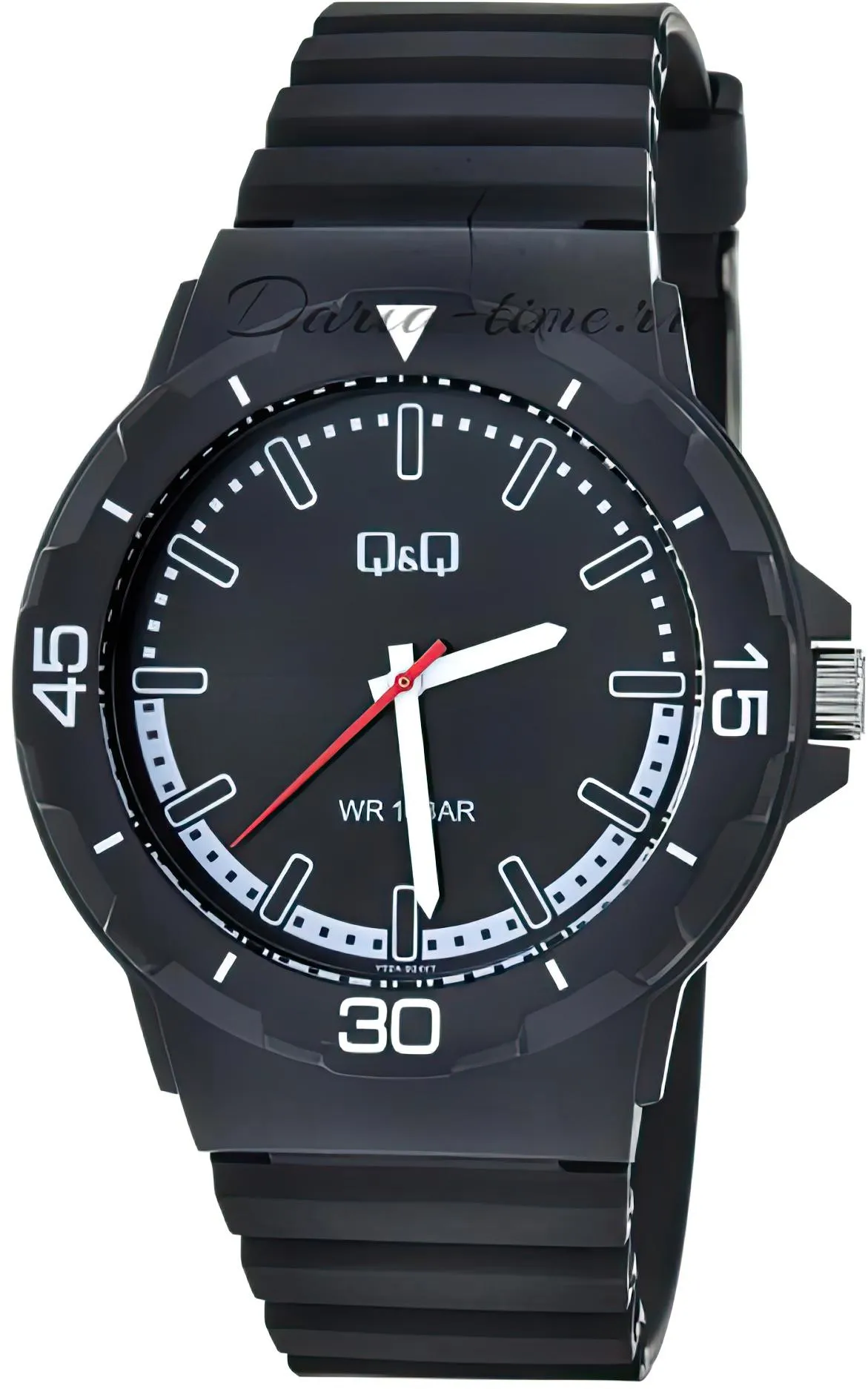 Мужские наручные часы Q&Q Casual V02AJ008Y. Точный кварцевый механизм с аналоговой индикацией. Полимерный корпус надежно защищает часы от механических повреждений. На стрелки и отметки нанесен светонакопительный состав, благодаря этому считывать информацию с циферблата возможно и в темноте. Полимерный ремешок. Натуральный полимерный материал является идеальным для изготовления ремешка благодаря своей чрезвычайной прочности и гибкости. Органическое стекло. Часы являются водонепроницаемыми до 10 Бар. Цвет корпуса: Черный. Цвет циферблата: Черный. Ширина (с заводной головкой): 38мм. Толщина: 12мм. Гарантия: 1 год.