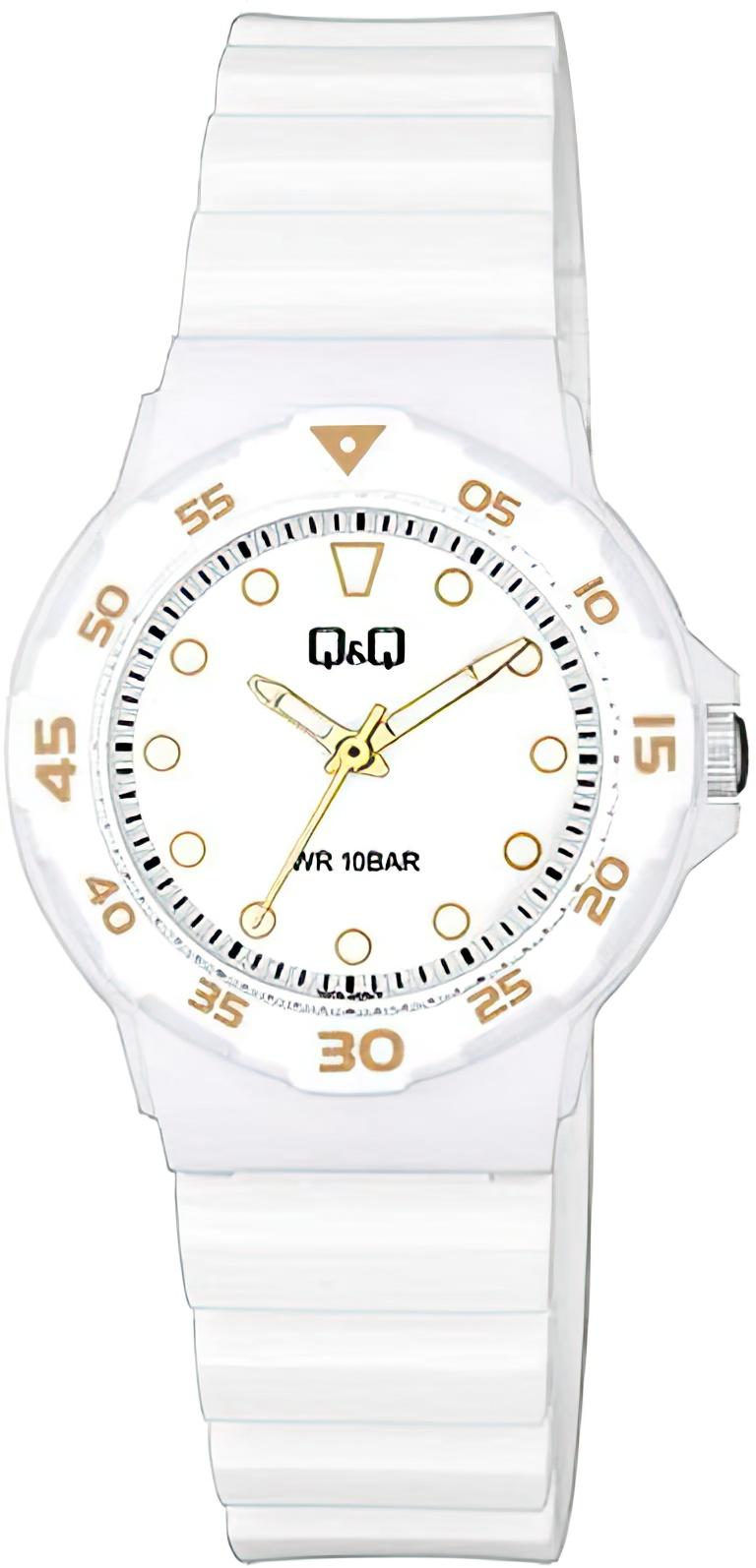 Женские наручные часы Q&Q Casual V07AJ002VY. Точный кварцевый механизм с аналоговой индикацией. Полимерный ремешок. Натуральный полимерный материал является идеальным для изготовления ремешка благодаря своей чрезвычайной прочности и гибкости. Полимерный ремешок. Натуральный полимерный материал является идеальным для изготовления ремешка благодаря своей чрезвычайной прочности и гибкости. Органическое стекло. Часы являются водонепроницаемыми до 10 Бар. Цвет циферблата: Белый. Цвет корпуса: Белый. На стрелки и отметки нанесен светонакопительный состав, благодаря этому считывать информацию с циферблата возможно и в темноте. Толщина: 9 мм. Гарантия: 1 год.