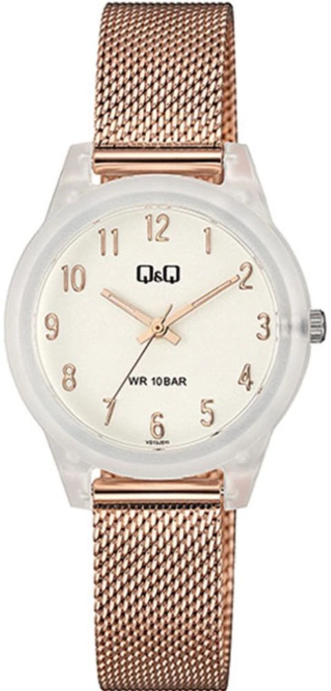 Женские наручные часы Q&Q Casual VS13J011Y. Точный кварцевый механизм с аналоговой индикацией. Браслет из нержавеющей стали. Полимерный ремешок. Натуральный полимерный материал является идеальным для изготовления ремешка благодаря своей чрезвычайной прочности и гибкости. Органическое стекло. Часы являются водонепроницаемыми до 10 Бар. Цвет циферблата: Серый. Цвет корпуса: Бежевый. Толщина: 8 мм. Гарантия: 1 год.
