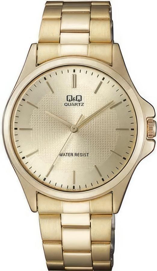 Мужские наручные часы Q&Q QA06J010Y. Точный кварцевый механизм с аналоговой индикацией. Корпус изготовлен из высококачественной часовой латуни с высокими антикоррозийными свойствами. Браслет из нержавеющей стали. Прочное, устойчивое к царапинам минеральное стекло защищает часы от повреждений.Часы являются водонепроницаемыми до 3 Бар. Цвет корпуса: Желтое золото. Цвет циферблата: Золотистый. Гарантия: 1 год.