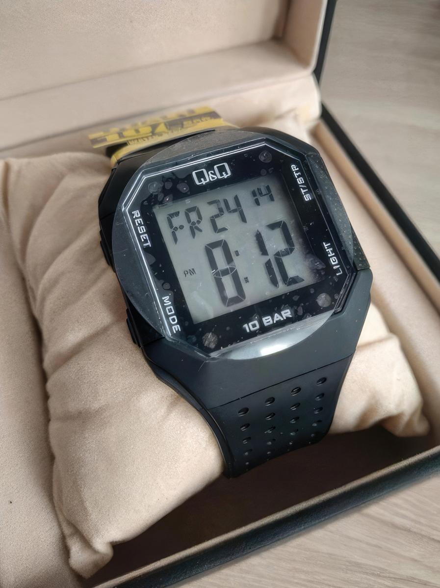 Электронные часы с точность хода не хуже -10 +15 сек./в месяц. • Ежедневный будильник со звуковым сигналом. • Секундомер. • Таймер обратного осчета. • Автоматический календарь. • Электрическая подсветка. • Легкое и прочное хезалитовое стекло. • Корпус из полимерных материалов. • Водозащита до 10 АТМ. • Черный ремешок из полимерного материала. • Простая ремешковая застежка. • Диаметр 40 мм, толщина 12 мм. Вес 48 мм.