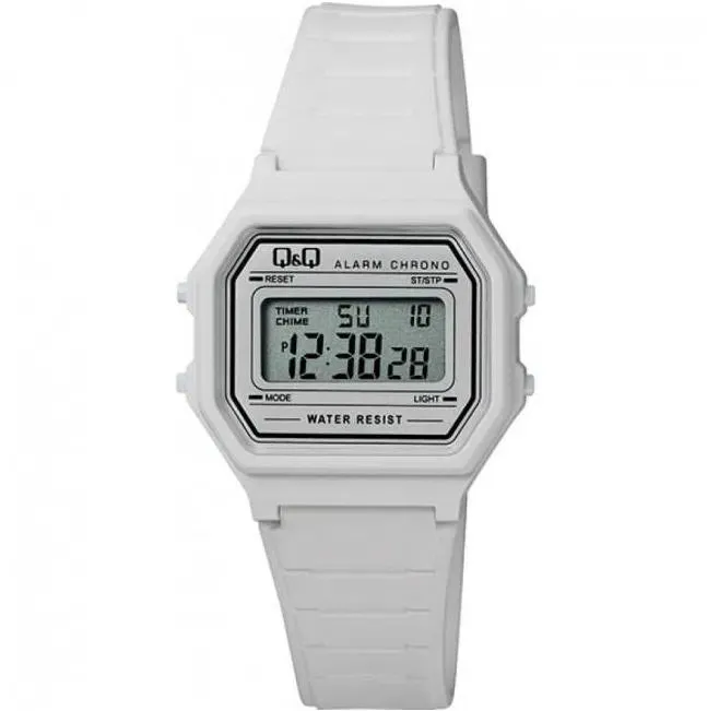 Мужские наручные часы Q&Q Superior M173J013Y. Точный кварцевый механизм с цифровой индикацией. Полимерный корпус надежно защищает часы от механических повреждений. Светодиодная подсветка. На циферблате отображается текущее число месяца и день недели. Функция хронографа. Полимерный ремешок. Натуральный полимерный материал является идеальным для изготовления ремешка благодаря своей чрезвычайной прочности и гибкости. Органическое стекло. Часы являются водонепроницаемыми до 3 Бар. Цвет корпуса: Белый. Цвет циферблата: Белый. Ширина (с заводной головкой): 42мм. Толщина: 10мм. Гарантия: 1 год.