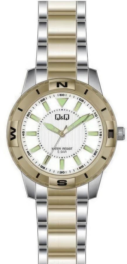 Мужские наручные часы Q&Q Superior QB00J401Y. Точный кварцевый механизм с аналоговой индикацией. Корпус изготовлен из высококачественной часовой латуни с высокими антикоррозийными свойствами. На стрелки и отметки нанесен светонакопительный состав, благодаря этому считывать информацию с циферблата возможно и в темноте. Браслет из нержавеющей стали. Прочное, устойчивое к царапинам минеральное стекло защищает часы от повреждений.Часы являются водонепроницаемыми до 5 Бар. Цвет корпуса: Желтое золото. Цвет циферблата: Белый. Ширина (с заводной головкой): 42мм. Толщина: 10мм. Гарантия: 1 год.