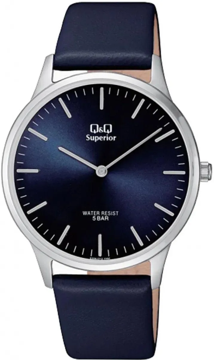 Точный кварцевый механизм. Часовая и минутная стрелки. • Точность хода не хуже -10 +15 сек./в месяц. • Минеральное стекло устойчивое к возникновению царапин. • Корпус из высококачественного стального сплава 316L с высокими антикоррозийными свойствами. • Водозащита до 5 АТМ. • Кожаный ремешок. • Классическая застёжка ремешка.• Диаметр корпуса 40 мм, толщина 7 мм.