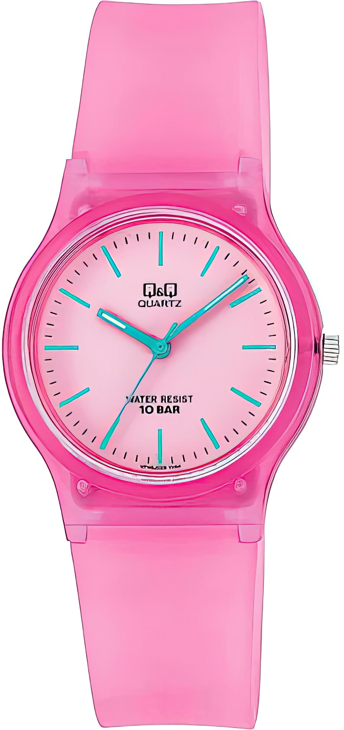 Детские наручные часы Q&Q VP46J029Y. Точный кварцевый механизм с аналоговой индикацией. Полимерный корпус надежно защищает часы от механических повреждений. Полимерный ремешок. Натуральный полимерный материал является идеальным для изготовления ремешка благодаря своей чрезвычайной прочности и гибкости. Прочное, устойчивое к царапинам минеральное стекло защищает часы от повреждений.Часы являются водонепроницаемыми до 10 Бар. Цвет корпуса: Розовый. Цвет циферблата: Розовый. Гарантия: 1 год.