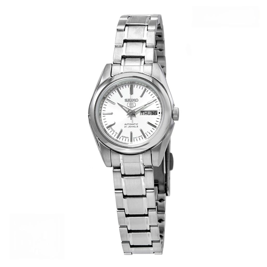 Женские наручные часы Seiko Automatic SYMK13J1. Механические с автоподзаводом. Пружина механизма заводится автоматически благодаря естественным движениям владельца в процессе ежедневной носки часов. На стрелки и отметки нанесен светонакопительный состав, благодаря этому считывать информацию с циферблата возможно и в темноте. Браслет из нержавеющей стали обладает высокой прочностью и износостойкостью, обеспечивая долговечность даже при активной эксплуатации. Материал устойчив к коррозии и сохраняет свой внешний вид надолго. Корпус изготовлен из высококачественной нержавеющей стали 316L с высокими антикоррозийными свойствами. Прочное, устойчивое к царапинам минеральное стекло защищает часы от повреждений. Часы являются водонепроницаемыми до 3 Бар. Цвет корпуса: Серебристый. Цвет циферблата: Белый. Цвет циферблата: Серебристый. Высота (с ушками): 25 мм. Толщина: 10 мм. Гарантия: 2 года.