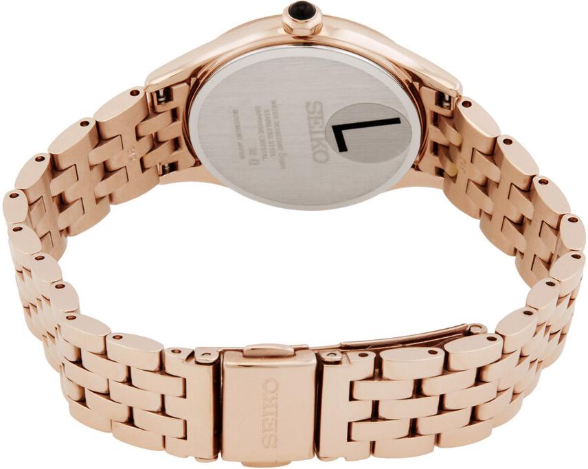 Женские наручные часы Seiko CS Dress SUR614P1. Точный кварцевый механизм с аналоговой индикацией. В отличие от механических часов, не требуют завода и работают от батареи, показывая отклонение всего несколько секунд в месяц. Браслет из нержавеющей стали обладает высокой прочностью и износостойкостью, обеспечивая долговечность даже при активной эксплуатации. Материал устойчив к коррозии и сохраняет свой внешний вид надолго. Корпус изготовлен из высококачественной нержавеющей стали 316L с высокими антикоррозийными свойствами. Сапфировое стекло. Искусственно изготовленное стекло с высокой прочностью и устойчивостью к царапинам. Часы являются водонепроницаемыми до 5 Бар. Цвет корпуса: Розовое золото. Цвет циферблата: Серый. Высота (с ушками): 37.7 мм. Толщина: 6.2 мм. Гарантия: 2 года.