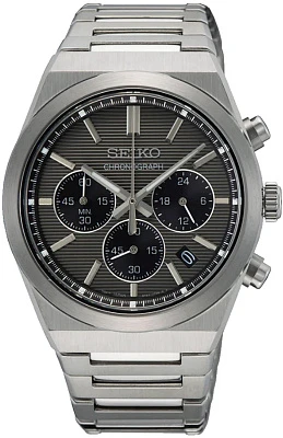 Мужские наручные часы Seiko Discover More SSB455P1. Точный кварцевый механизм с аналоговой индикацией. Браслет из нержавеющей стали. Функция хронографа. Браслет из нержавеющей стали. Сапфировое стекло. Искусственно изготовленное стекло с высокой прочностью и устойчивостью к царапинам. На циферблате отображается текущее число месяца. Часы являются водонепроницаемыми до 10 Бар. Цвет циферблата: Серебристый. Цвет корпуса: Серый. На стрелки и отметки нанесен светонакопительный состав, благодаря этому считывать информацию с циферблата возможно и в темноте. Толщина: 12 мм. Гарантия: 2 года.