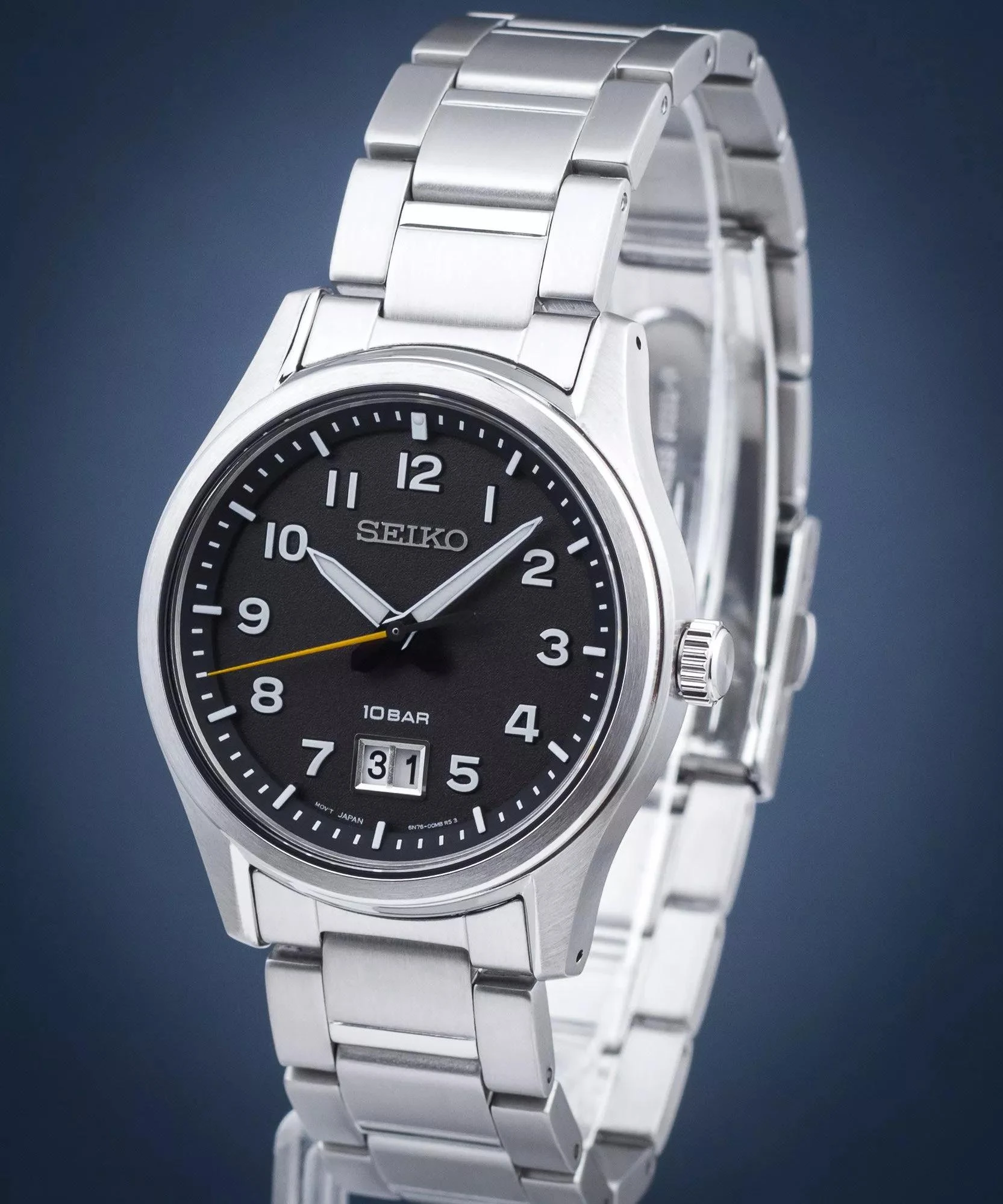 Мужские наручные часы Seiko Discover More SUR569P1. Точный кварцевый механизм с аналоговой индикацией. Браслет из нержавеющей стали. Браслет из нержавеющей стали. Сапфировое стекло. Искусственно изготовленное стекло с высокой прочностью и устойчивостью к царапинам. На циферблате отображается текущее число месяца. Часы являются водонепроницаемыми до 10 Бар. Цвет циферблата: Серебристый. Цвет корпуса: Черный. На стрелки и отметки нанесен светонакопительный состав, благодаря этому считывать информацию с циферблата возможно и в темноте. Толщина: 10 мм. Гарантия: 2 года.