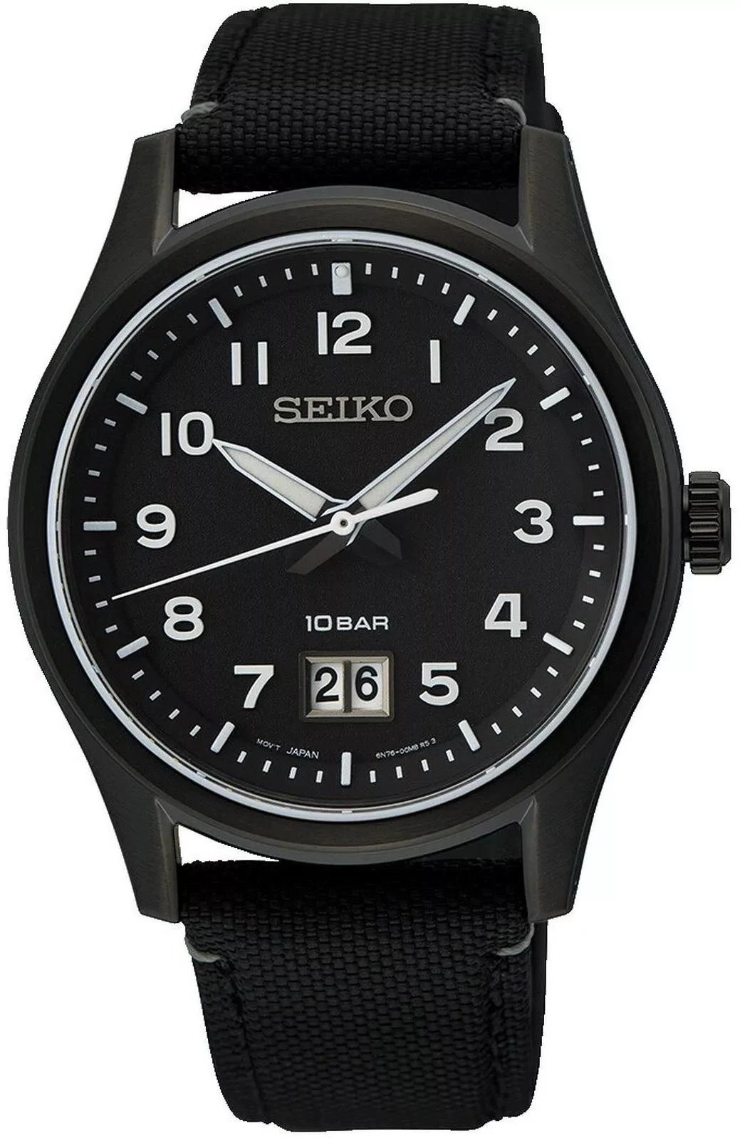 Мужские наручные часы Seiko Discover More SUR571P1. Точный кварцевый механизм с аналоговой индикацией. Текстильный ремешок. Браслет из нержавеющей стали. Сапфировое стекло. Искусственно изготовленное стекло с высокой прочностью и устойчивостью к царапинам. На циферблате отображается текущее число месяца. Часы являются водонепроницаемыми до 10 Бар. Цвет циферблата: Черный. Цвет корпуса: Черный. На стрелки и отметки нанесен светонакопительный состав, благодаря этому считывать информацию с циферблата возможно и в темноте. Толщина: 10 мм. Гарантия: 2 года.