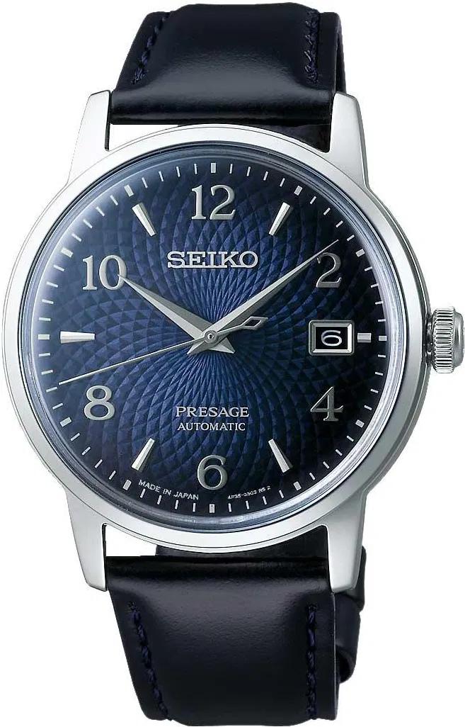 Автоматический механизм калибр 4R35 (23 камня, частота полуколебаний баланса 21600 полуоб/час.). Механизм автоподзавода с возможностью ручного подзавода. Центральная секундная стрелка. Апертура даты. Запас хода 41 час. Точность хода не хуже -15 +25 сек./в сутки. • Стекло: Хардлекс (Hardlex) – специальный минеральный хрусталь повышенной прочности, закалённый в кислоте, разработанный компанией SEIKO, и значительно превосходящее обычное минеральное стекло по прочности. • Задняя крышка со смотровым окном. • Корпус из высококачественного стального сплава 316L с высокими антикоррозийными свойствами. • Водозащита до 5 АТМ. • Кожаный ремешок. • Браслетный замок типа 'бабочка' расстегиваемый одним касанием.