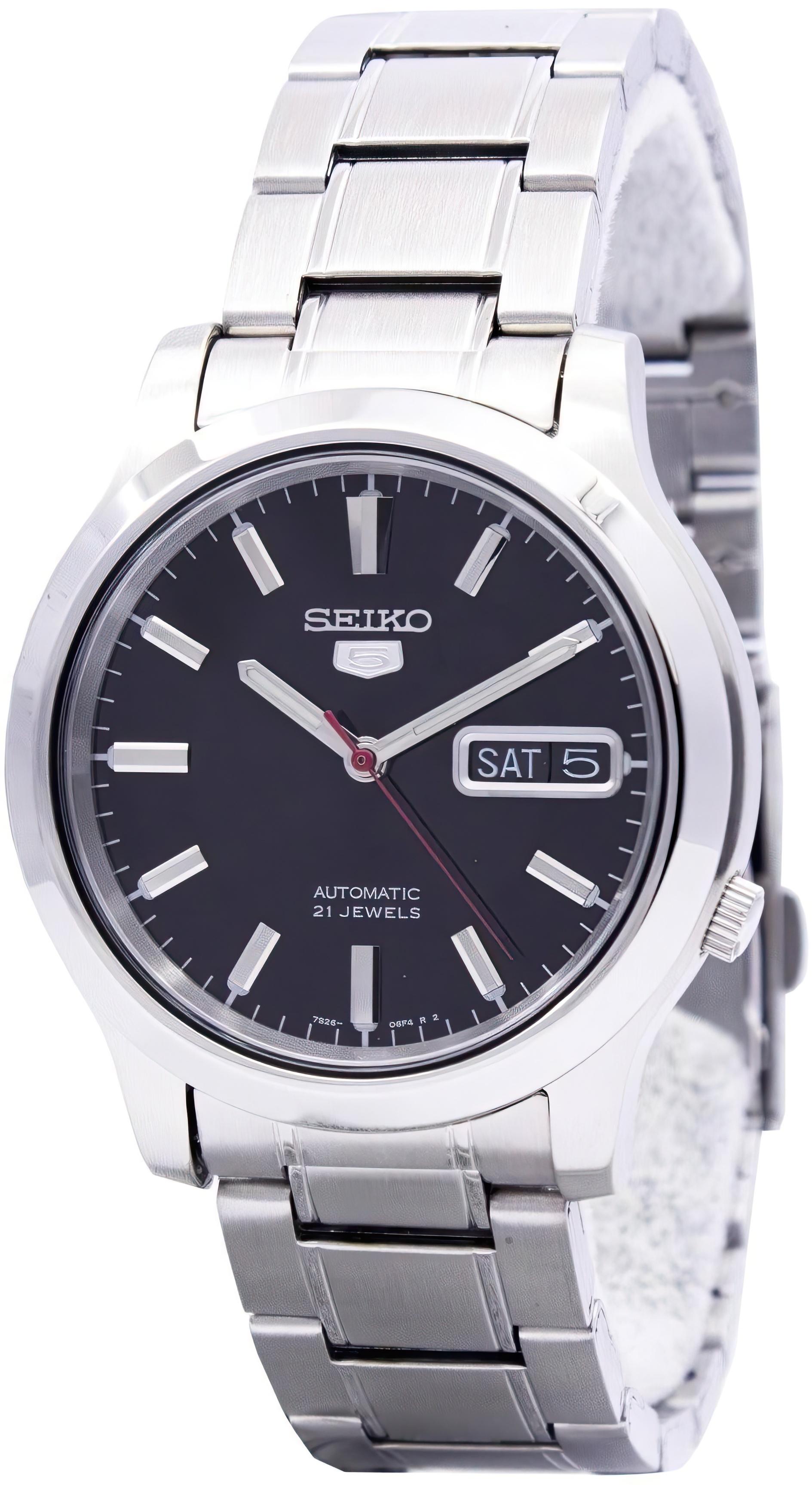 Мужские наручные часы Seiko Seiko 5 SNK795K1. Механические с ручным подзаводом. Корпус изготовлен из высококачественной нержавеющей стали 316L с высокими антикоррозийными свойствами. На стрелки и отметки нанесен светонакопительный состав, благодаря этому считывать информацию с циферблата возможно и в темноте. На циферблате отображается текущее число месяца и день недели. Браслет из нержавеющей стали. Прочное, устойчивое к царапинам минеральное стекло защищает часы от повреждений. Часы являются водонепроницаемыми до 3 Бар. Цвет корпуса: Серебристый. Цвет циферблата: Черный. Ширина (с заводной головкой): 37мм. Толщина: 11мм. Гарантия: 2 года.