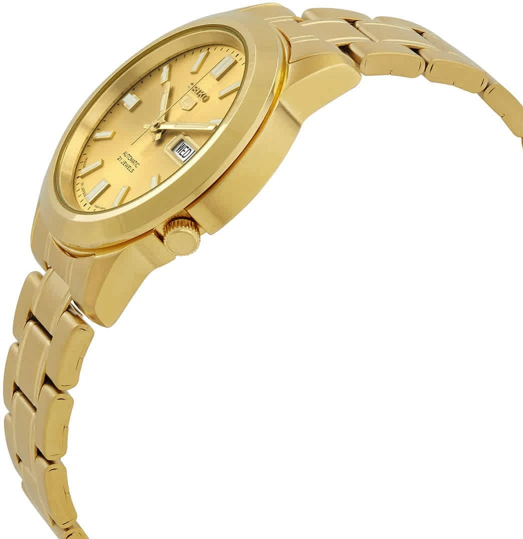 Мужские наручные часы Seiko Seiko 5 SNKK20J1. Механические с ручным подзаводом. Браслет из нержавеющей стали. Браслет из нержавеющей стали. Прочное, устойчивое к царапинам минеральное стекло защищает часы от повреждений. На циферблате отображается текущее число месяца и день недели. Часы являются водонепроницаемыми до 3 Бар. Цвет циферблата: Желтое золото. Цвет корпуса: Золотистый. На стрелки и отметки нанесен светонакопительный состав, благодаря этому считывать информацию с циферблата возможно и в темноте. Толщина: 11 мм. Гарантия: 2 года.