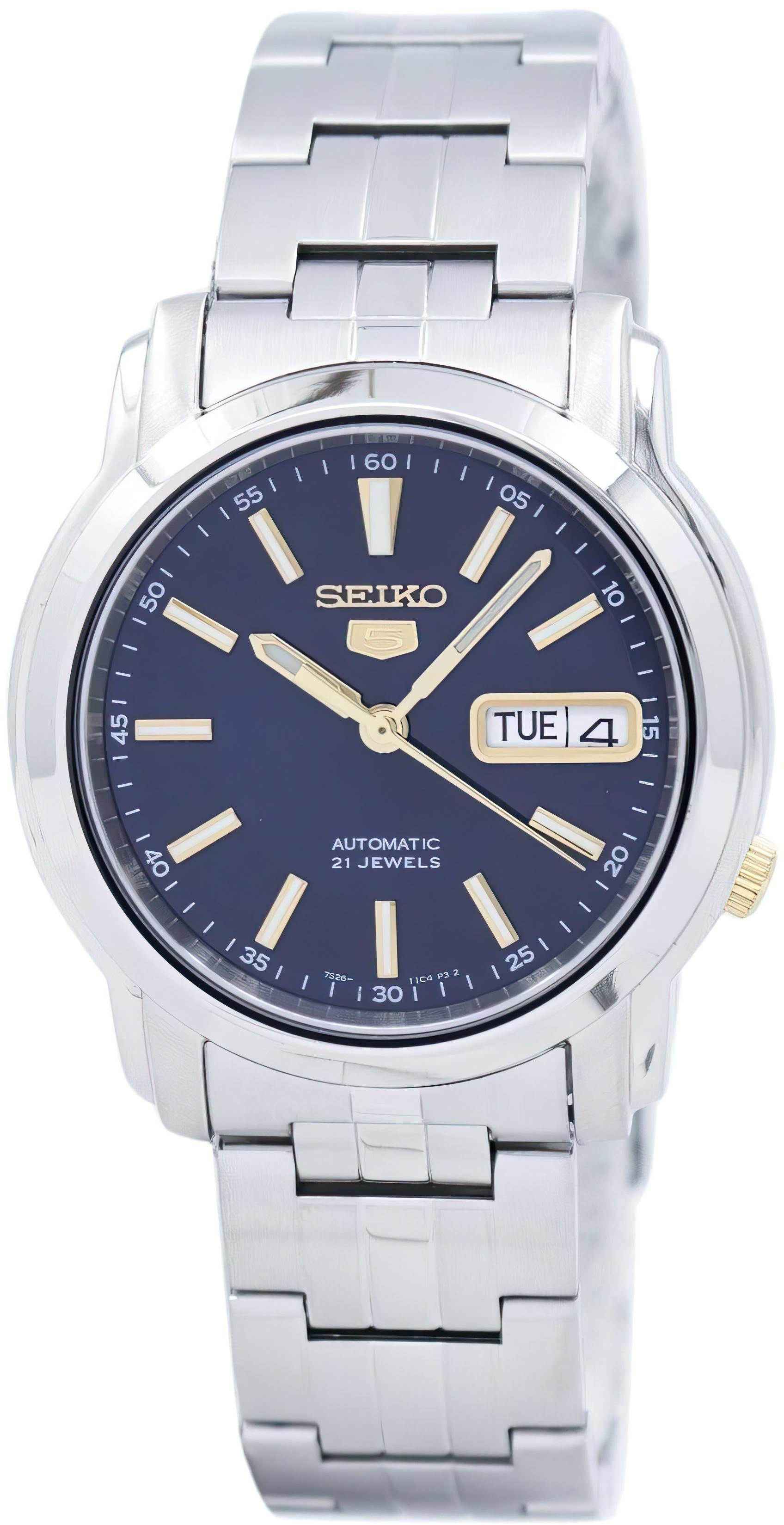 Мужские наручные часы Seiko Seiko 5 SNKL79K1. Точный кварцевый механизм с аналоговой индикацией. Браслет из нержавеющей стали. Браслет из нержавеющей стали. Прочное, устойчивое к царапинам минеральное стекло защищает часы от повреждений. На циферблате отображается текущее число месяца и день недели. Часы являются водонепроницаемыми до 3 Бар. Цвет циферблата: Серебристый. Цвет корпуса: Синий. На стрелки и отметки нанесен светонакопительный состав, благодаря этому считывать информацию с циферблата возможно и в темноте. Толщина: 11 мм. Гарантия: 2 года.