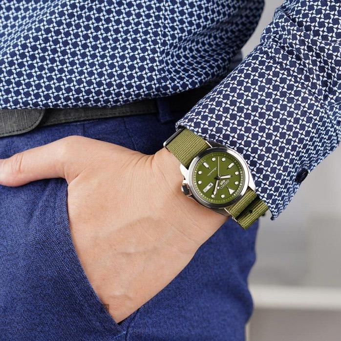 Автоматический механизм калибр 4R36 (24 камня, частота полуколебаний баланса 21600 полуоб/час.). Механизм автоподзавода с возможностью ручного подзавода. Центральная секундная стрелка. Аппертура даты и дня недели. Противоударная система Diashock. Запас хода 41 час. Точность хода не хуже -15 +25 сек./в сутки. • Стекло: Хардлекс (Hardlex) – специальный минеральный хрусталь повышенной прочности, закалённый в кислоте, разработанный компанией SEIKO, и значительно превосходящее обычное минеральное стекло по прочности. • Светонакопительный состав на стрелках и маркерах часа. • Корпус из высококачественного стального сплава 316L с высокими антикоррозийными свойствами. • Задняя крышка со смотровым окном. • Водозащита до 10 АТМ. • Нейлоновый ремешок.
