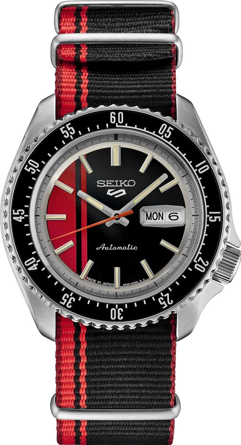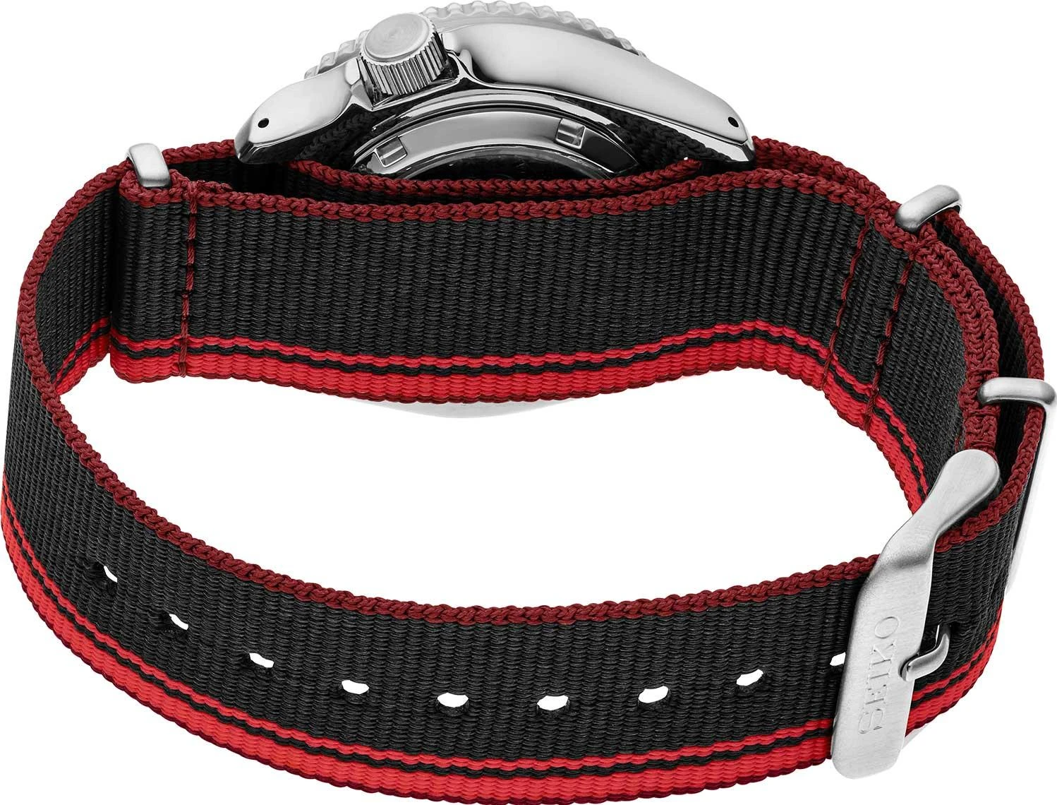 Мужские наручные часы Seiko Seiko 5 Sports SRPK71. Механические с автоподзаводом. Пружина механизма заводится автоматически благодаря естественным движениям владельца в процессе ежедневной носки часов. На стрелки и отметки нанесен светонакопительный состав, благодаря этому считывать информацию с циферблата возможно и в темноте. Текстильный ремешок. В отличие от кожаных ремешков, текстильный более устойчив к воздействию влаги и пота, не теряя своих свойств. Корпус изготовлен из высококачественной нержавеющей стали 316L с высокими антикоррозийными свойствами. Прочное, устойчивое к царапинам минеральное стекло защищает часы от повреждений. Часы являются водонепроницаемыми до 10 Бар. Цвет корпуса: Серебристый. Цвет циферблата: Черный. Высота (с ушками): 46 мм. Толщина: 13.4 мм. Гарантия: 2 года.