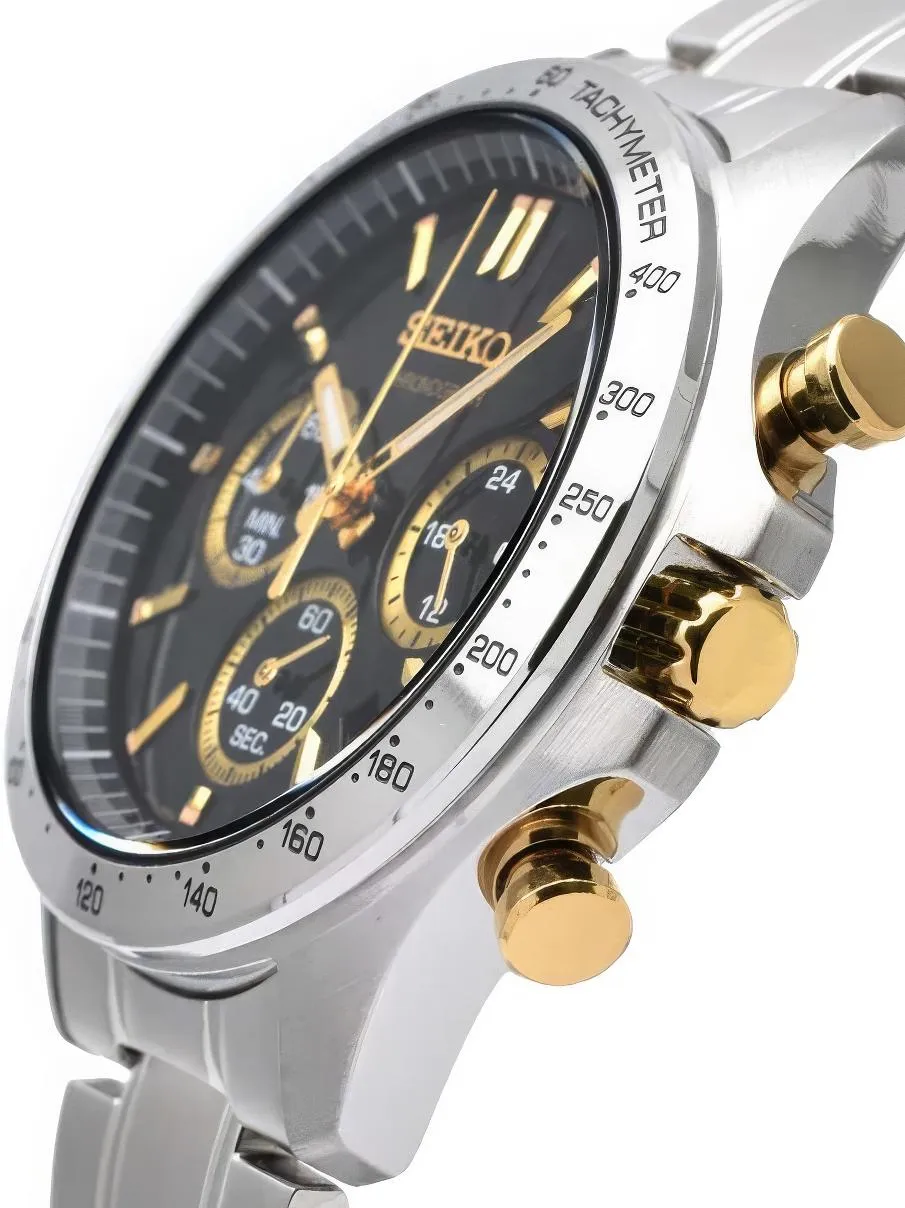 Мужские наручные часы Seiko Spirit SBTR015. Точный кварцевый механизм с аналоговой индикацией. Браслет из нержавеющей стали. Функция хронографа. Браслет из нержавеющей стали. Прочное, устойчивое к царапинам минеральное стекло защищает часы от повреждений. На циферблате отображается текущее число месяца. Часы являются водонепроницаемыми до 10 Бар. Цвет циферблата: Серебристый. Цвет корпуса: Черный. На стрелки и отметки нанесен светонакопительный состав, благодаря этому считывать информацию с циферблата возможно и в темноте. Толщина: 12 мм. Гарантия: 2 года.