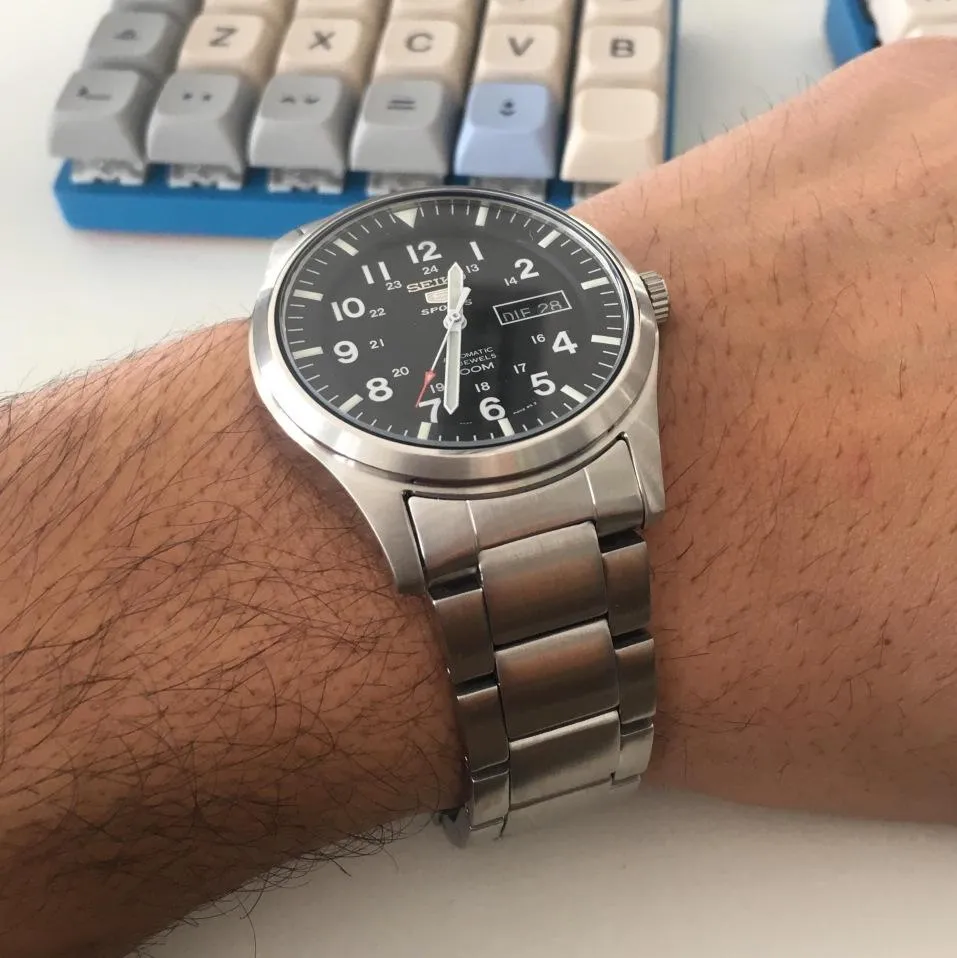 Автоматический механизм калибр 7S36 (23 камня, частота полуколебаний баланса 21600 полуоб/час.). Механизм автоподзавода без возможности ручного подзавода. Центральная секундная стрелка. Апертура даты, дня недели. Запас хода 45 часов. Точность хода не хуже -15 +25 сек./в сутки. • Стекло: Хардлекс (Hardlex) – специальный минеральный хрусталь повышенной прочности, закалённый в кислоте, разработанный компанией SEIKO, и значительно превосходящее обычное минеральное стекло по прочности. • Светонакопительный состав на стрелках и маркерах часа. • Корпус из высококачественного стального сплава 316L с высокими антикоррозийными свойствами. • Водозащита до 10 АТМ.