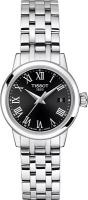 Изысканные оригинальные часы Tissot Classic Dream Lady с артикулом T129.210.11.053.00 — это современная классика, предлагающая вневременной дизайн и утонченность, идеально подходящие как для формальных мероприятий, так и для повседневного ношения. Эти женские часы произведены в Швейцарии и оснащены высокоточным швейцарским кварцевым механизмом с калибром 8 3/4''' и функцией EOL (индикатор окончания срока службы батареи), работающим от батареи Renata 364. Круглый корпус диаметром 28 мм, толщиной 7.1 мм и изготовлен из высококачественной нержавеющей стали 316L, известной своей прочностью и гипоаллергенными свойствами. Циферблат черного цвета украшен римскими индексами и защищен устойчивым к царапинам сапфировым стеклом — самым твердым материалом после алмаза. Браслет серого цвета также выполнен из нержавеющей стали и надежно фиксируется на запястье благодаря застежке «бабочка» с кнопками. Водостойкость этих швейцарских часов составляет 50 метров (5 АТМ/bar): они выдерживают мытье рук, попадание крупных капель, что делает их надежным выбором для активной владелицы. Вес модели составляет 74 г.